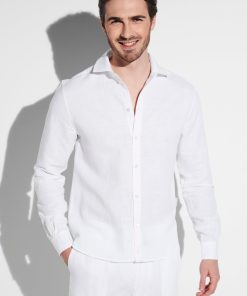 Zimmerli Men’s Loungewear Linen Blend | Button Front Shirt Long Sleeve – White | White