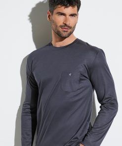 Zimmerli Men’s Loungewear Cozy Comfort | T-shirt Long Sleeve – Grey Mélange | Grey Mélange