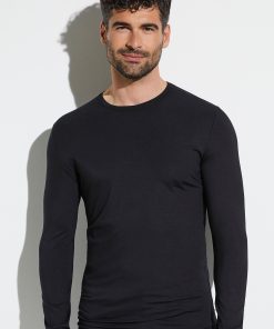 Zimmerli Men’s Underwear Pureness | T-shirt Long Sleeve -shirt Langarm – Black | Black