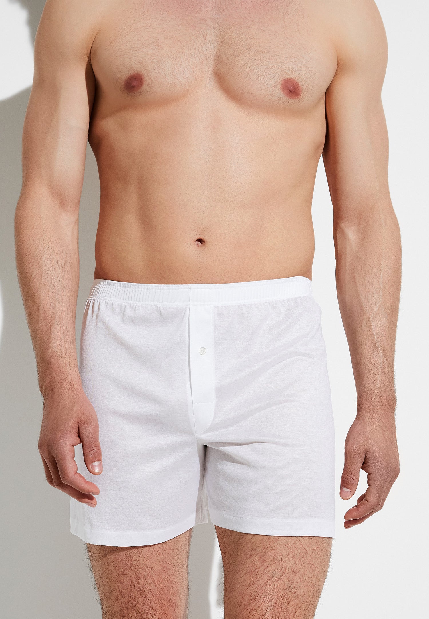 Blissfully soft and uncomplicated: these boxer shorts come in a simple style that combines tradition with a contemporary shape. The lightweight design gives gentlemen of the world plenty of space to move and guarantees unbeatable comfort. The mercerised cotton is incredibly light and is laboriously worked by hand to create a fly opening and concealed elasticated waist.